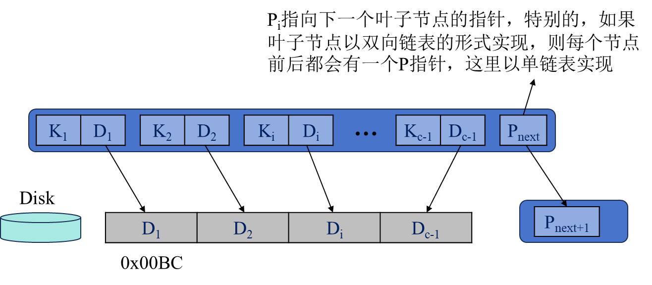 - 叶子节点的值指向磁盘中的某块数据地址;